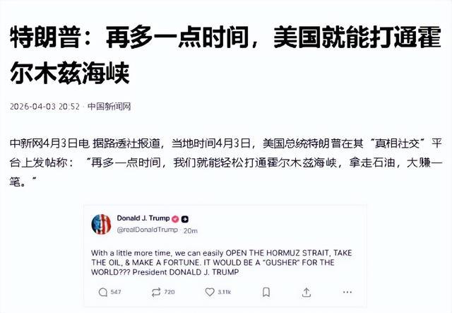 此前特朗普还要求其他国家自行去海峡抢油,如今的大话,反倒坐实了美国的心虚与狼狈。